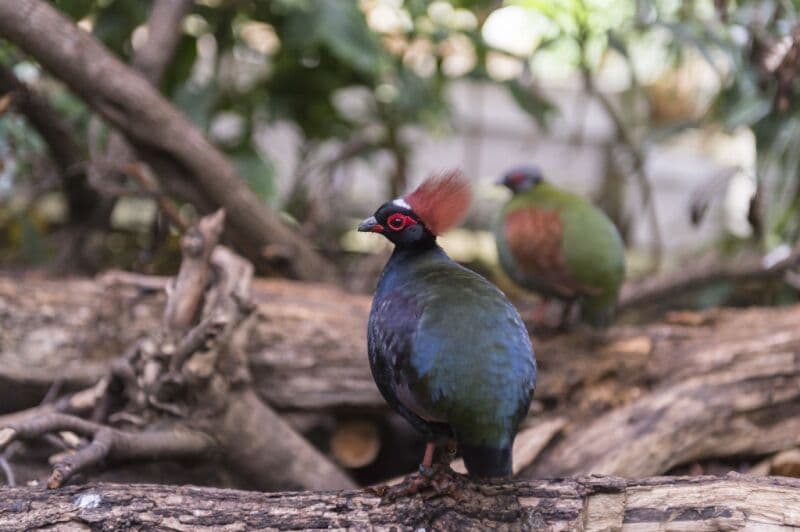 Crested partridges are omnivorous birds that mainly consume seeds, insects, mollusks and some fruits. In the wild, they are commonly found around wild pigs to feed on their discarded food.