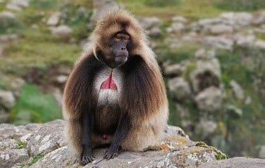 Geladas is a species of baboons that primarily consume grasses. Next to this, they may also eat other vegetation such as leaves, herbs and roots. Occasionally, fruits and invertebrates like insects may be consumed.