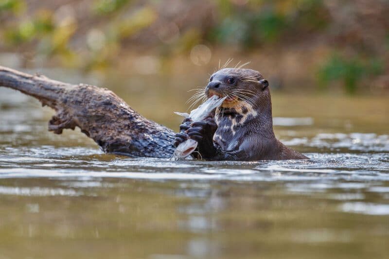 Giant otters are piscivorous carnivores, meaning that they mainly consume fish. If fish are not available, invertebrates such as crabs are also consumed.