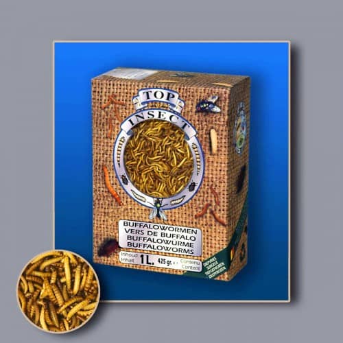 Buffalo worms are the larvae of Alphitobius diaperinus and are very nutritious due to their high protein percentage and low fat percentage. Besides, these worms are rather tasty, and especially small birds are mad about them. Buffalo worms are also softer than e.g. mealworms, and are therefore more digestible.